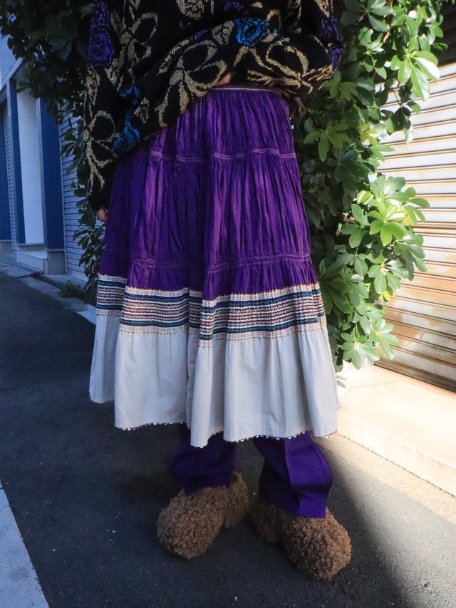 ヴィンテージ ハンドペイント メキシカン サーキュラー スカート 【ブランド】 表記なし 【生産国】 表記なし 【表記サイズ】 表記なし ※モデル身長 - 【実寸サイズ】 ウエスト 57cm 総丈 73cm 【素材】 表記なし 【コンディション】 USEDですので使用感等ございます。 目立つ汚れ、ダメージ等は無く、 まだまだご愛用していただけます。 画像にてご確認、古着という事をご理解の上、ご注文よろしくお願いします。
