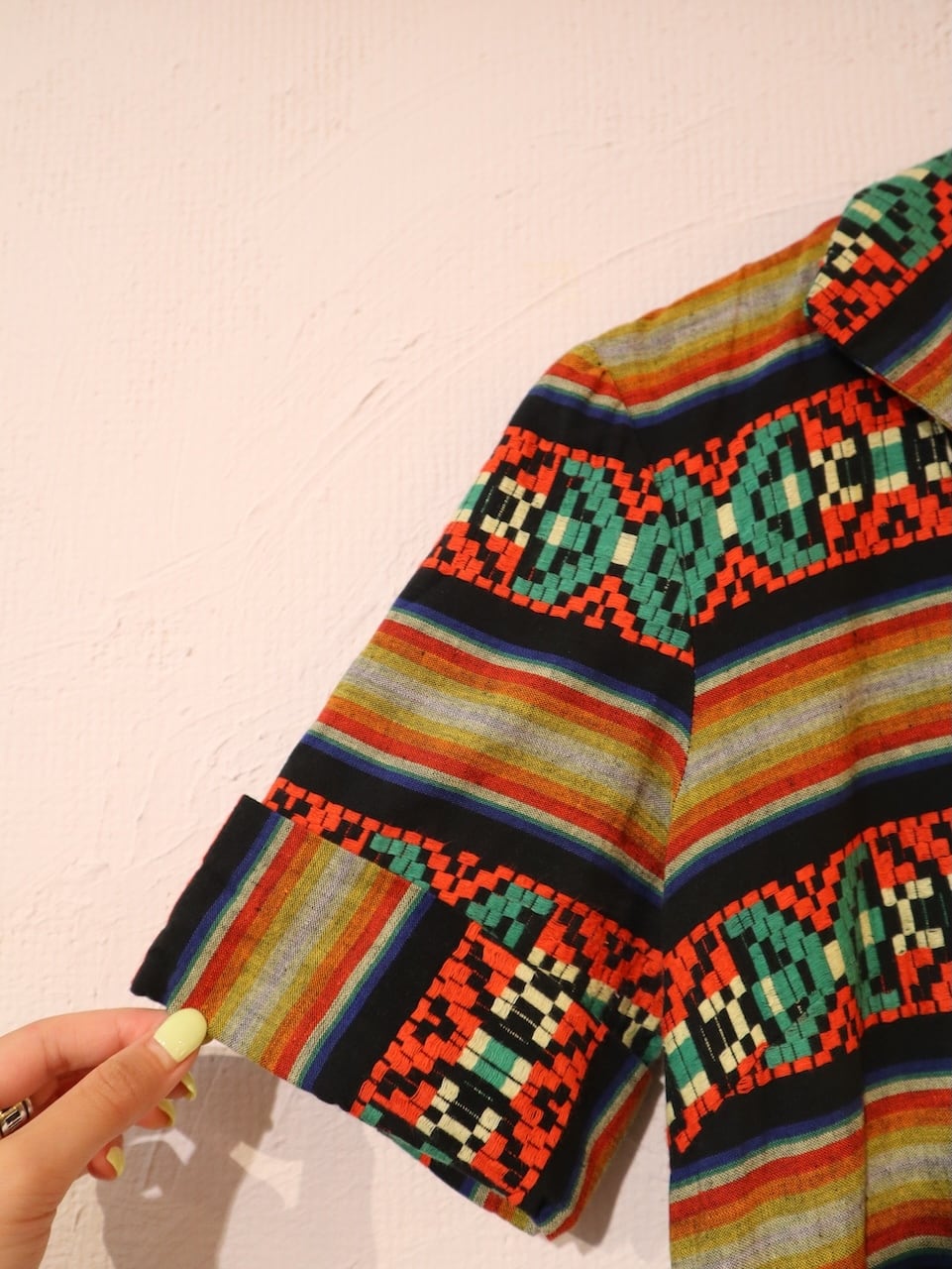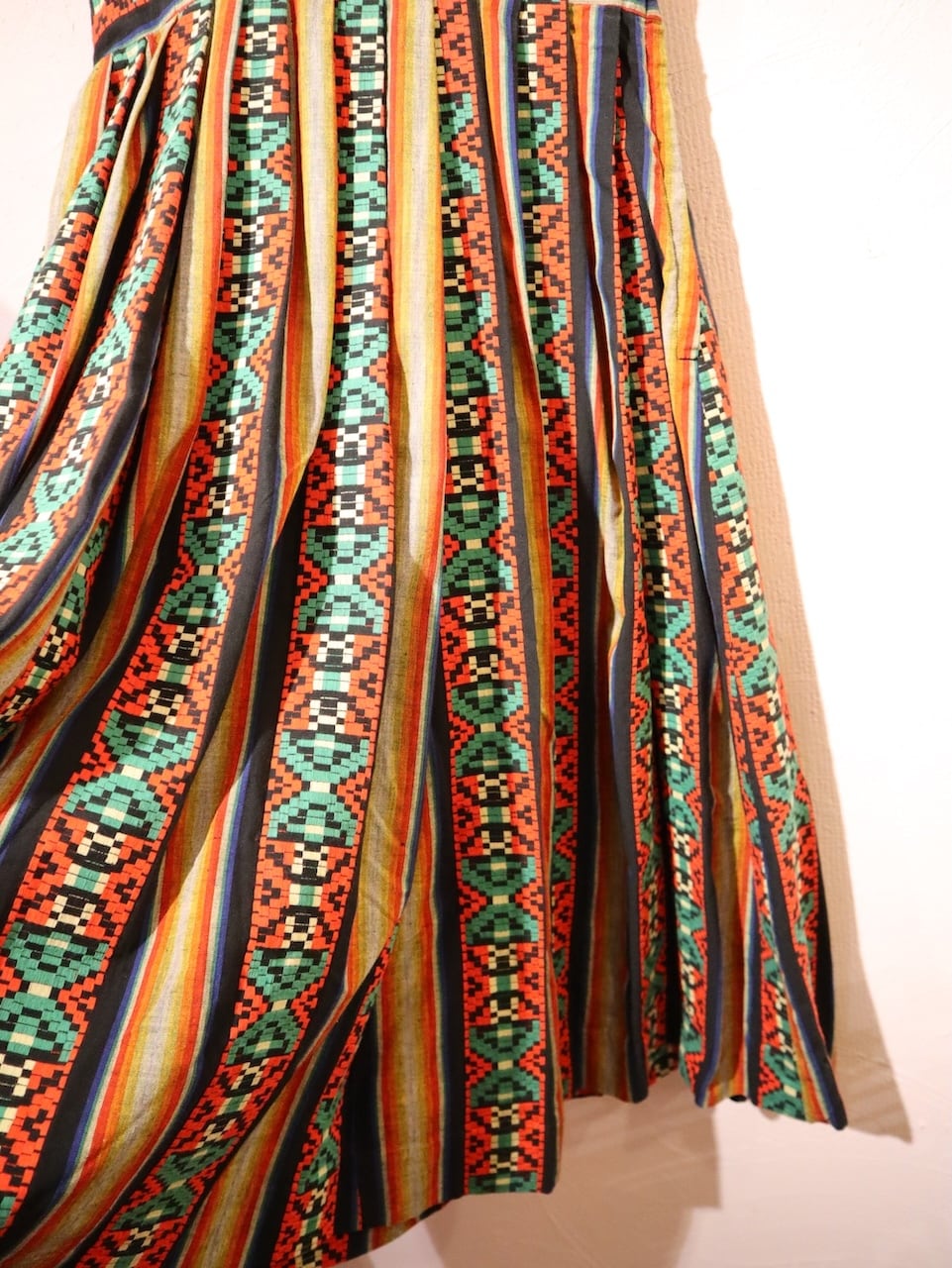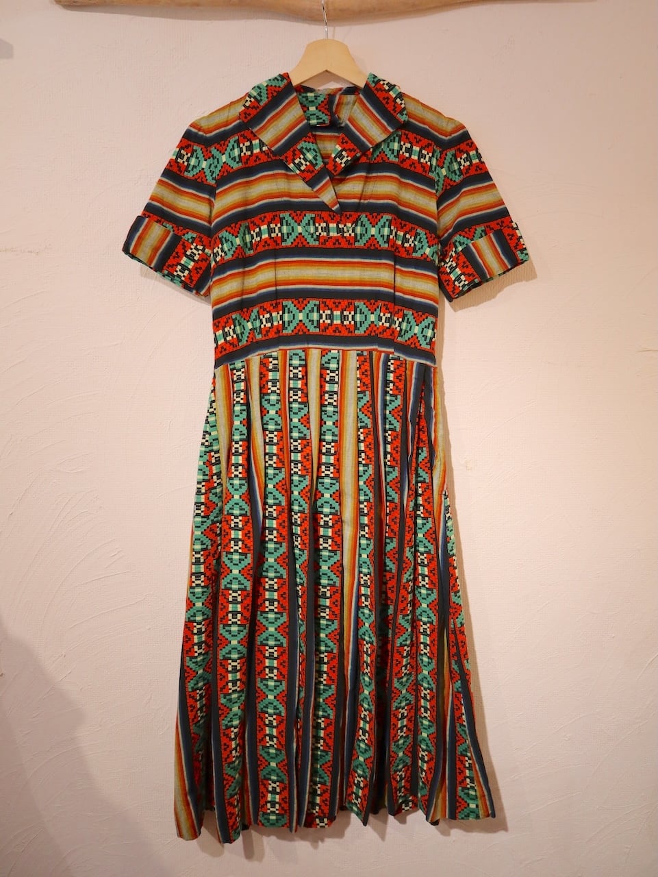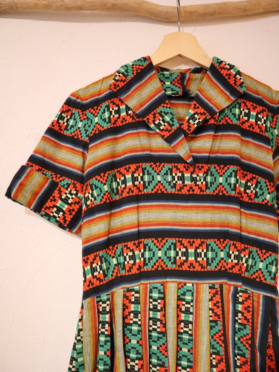 ヴィンテージ 総柄 オープンカラー プリーツ ワンピース