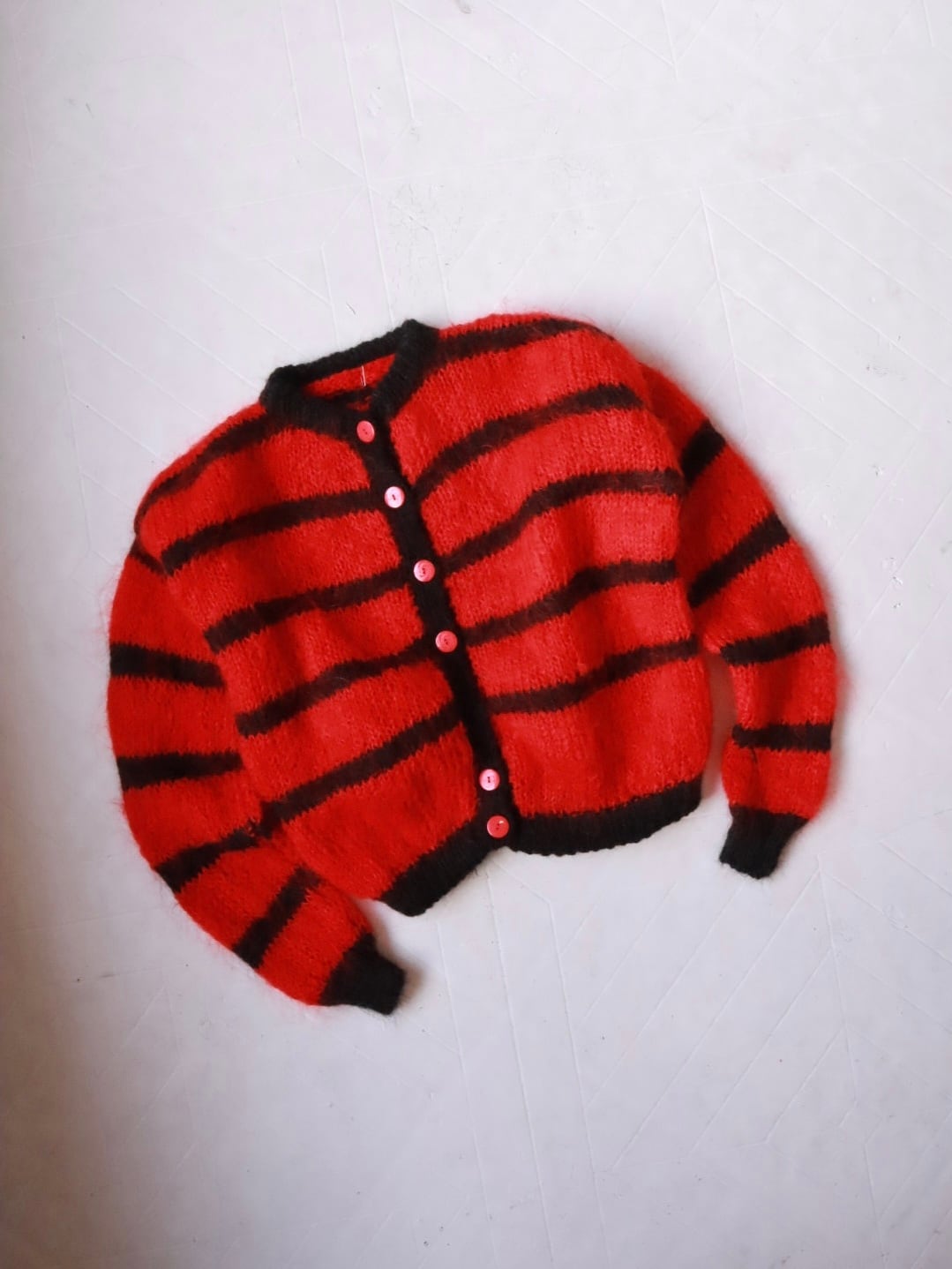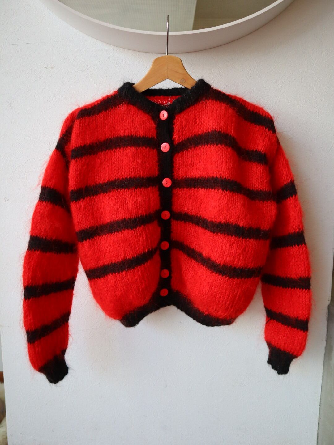 boarder pattern mohair blend knit cardigan