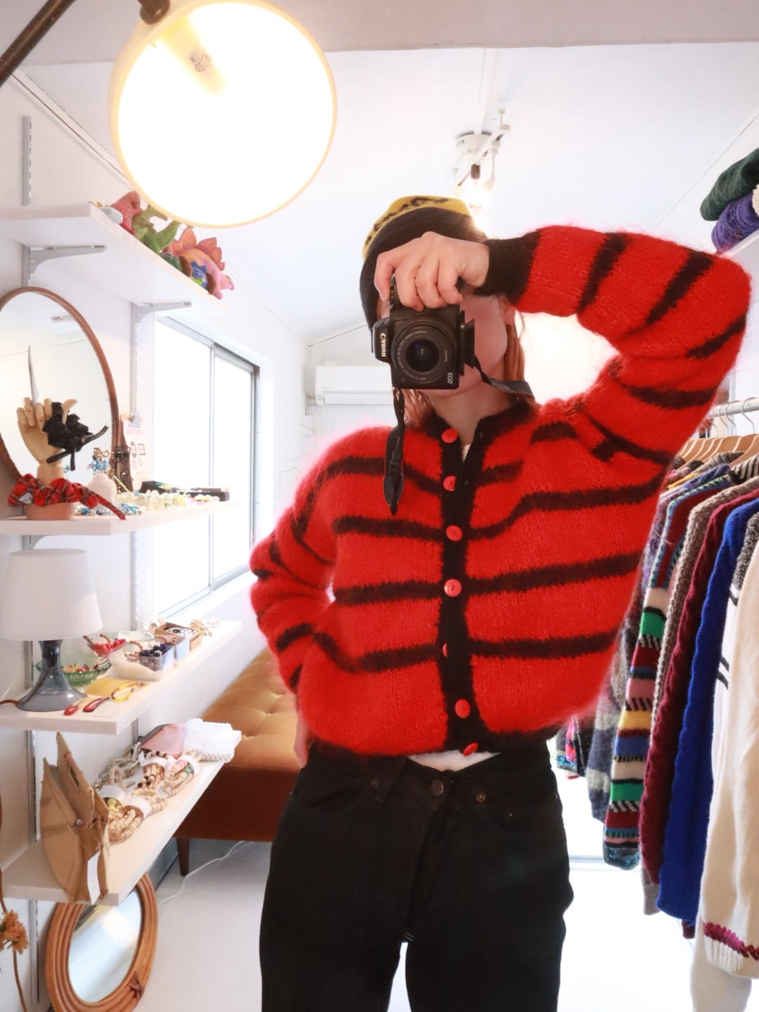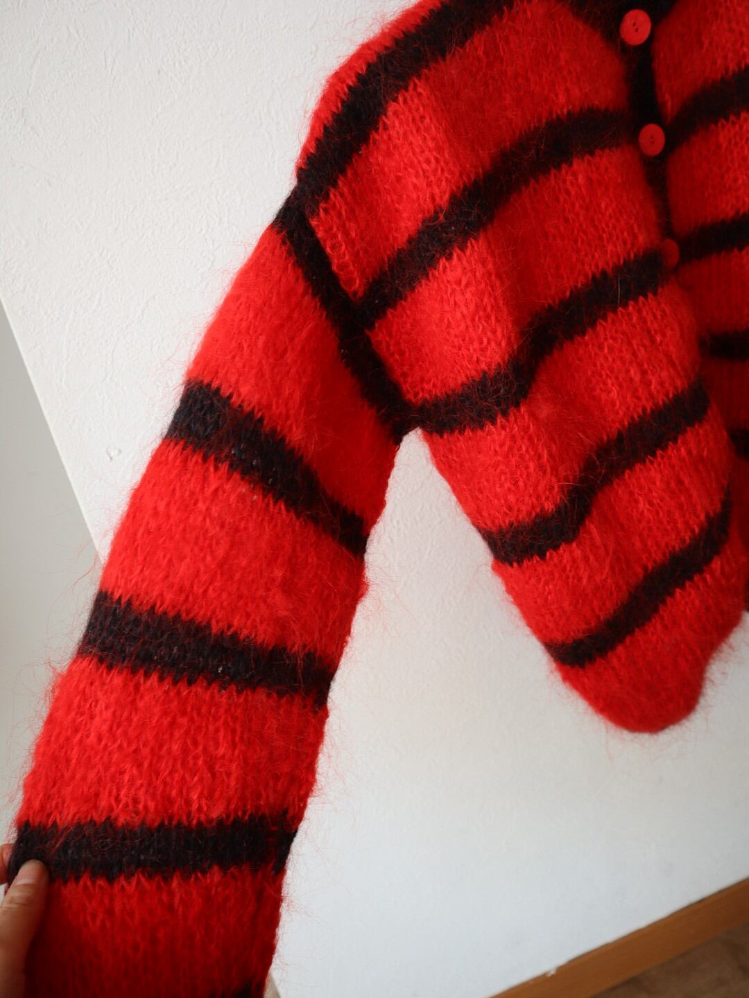 モヘア混 ボーダー ニットカーディガン