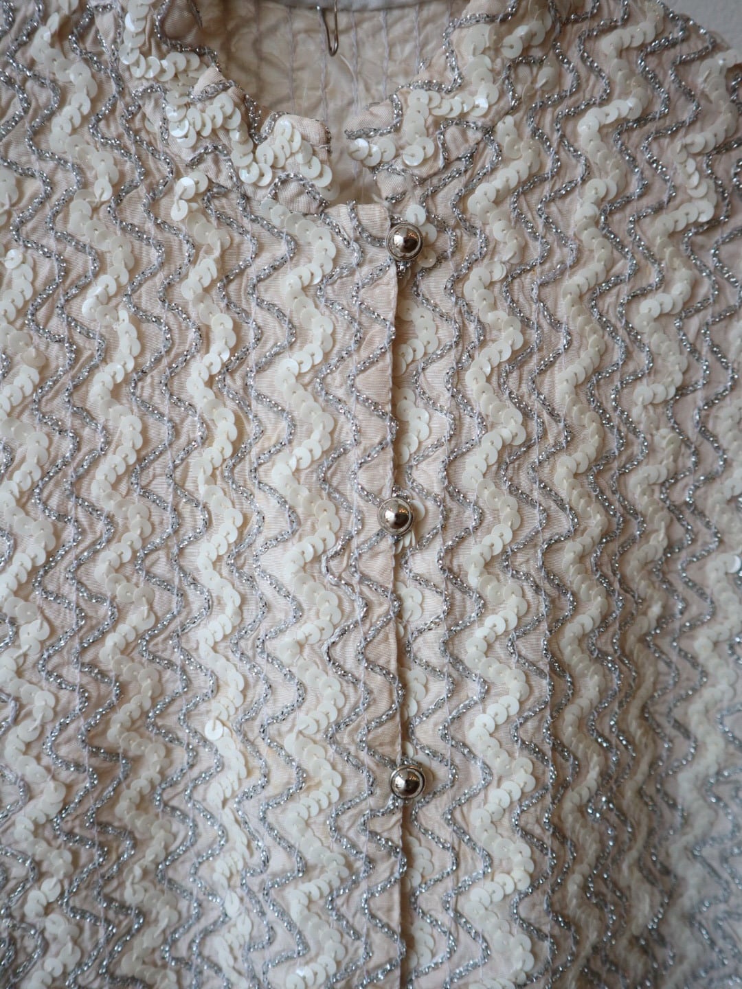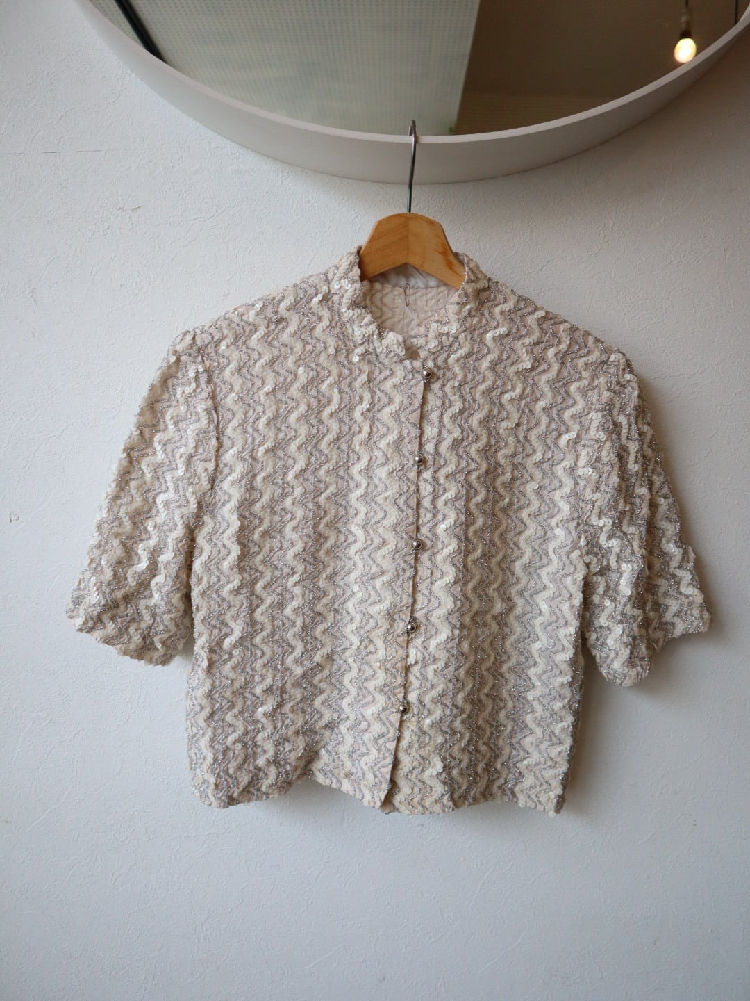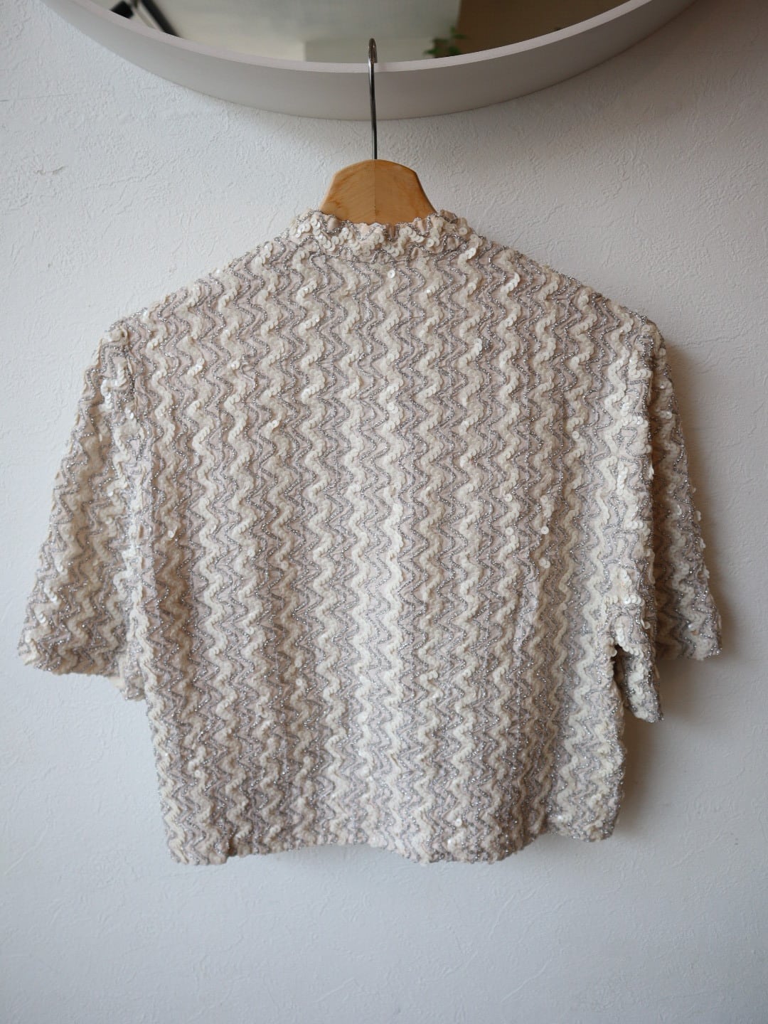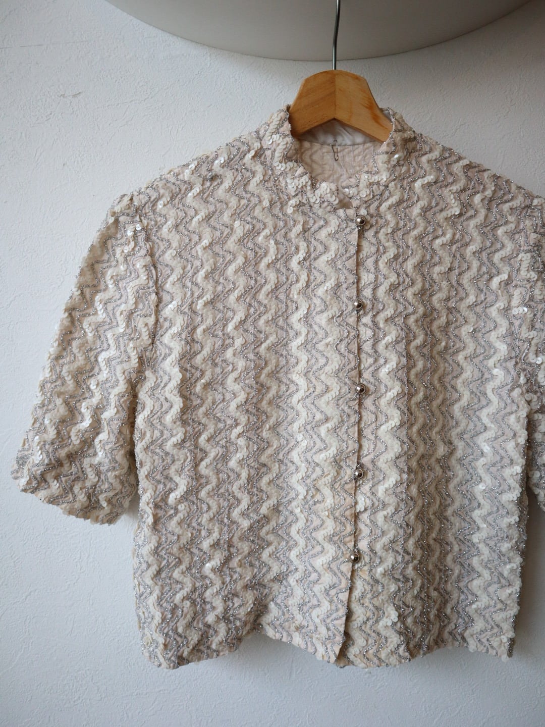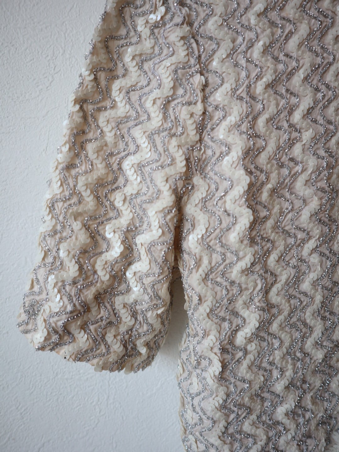 ウネウネ スパンコール 半袖ジャケット カーディガン