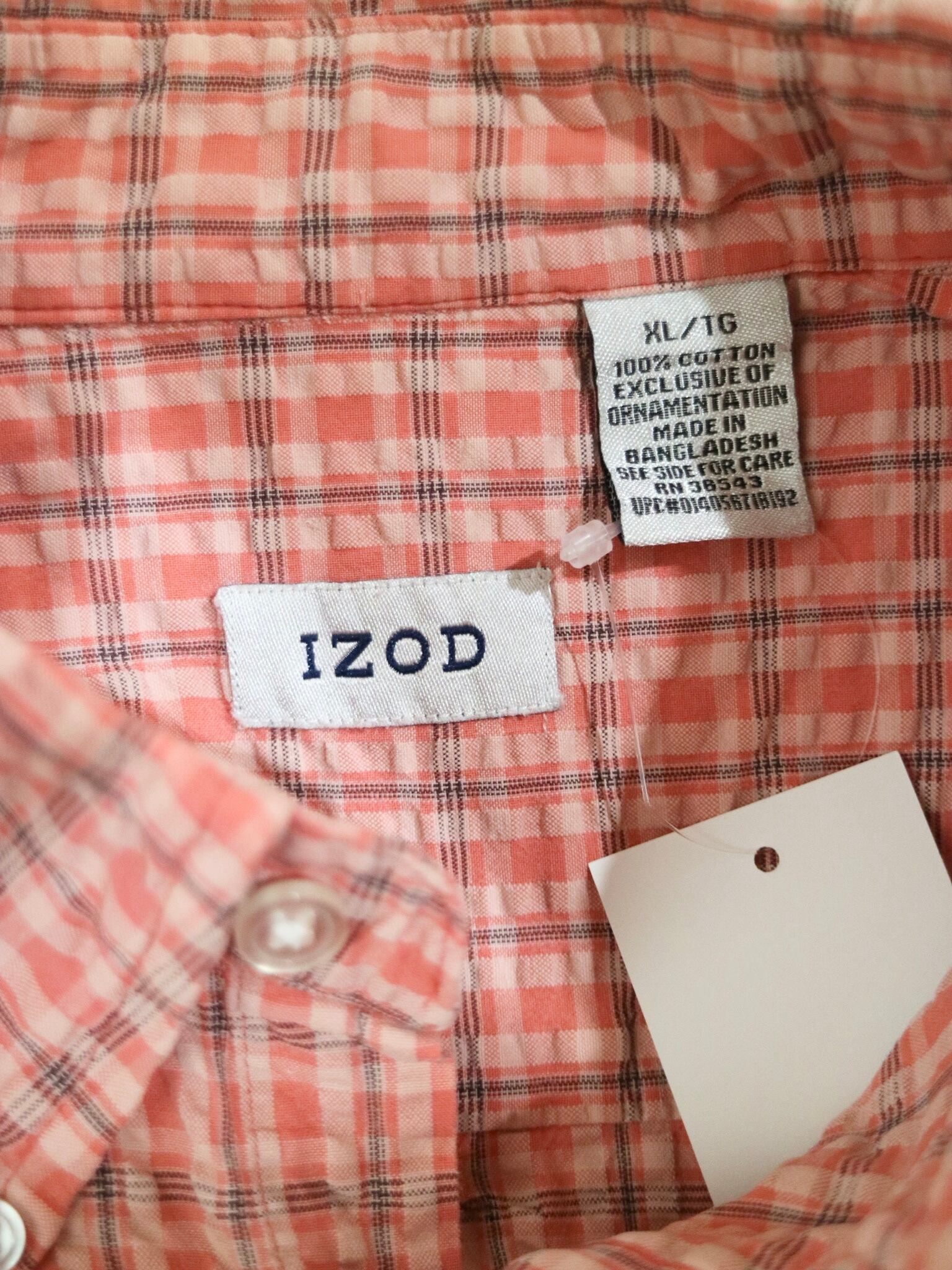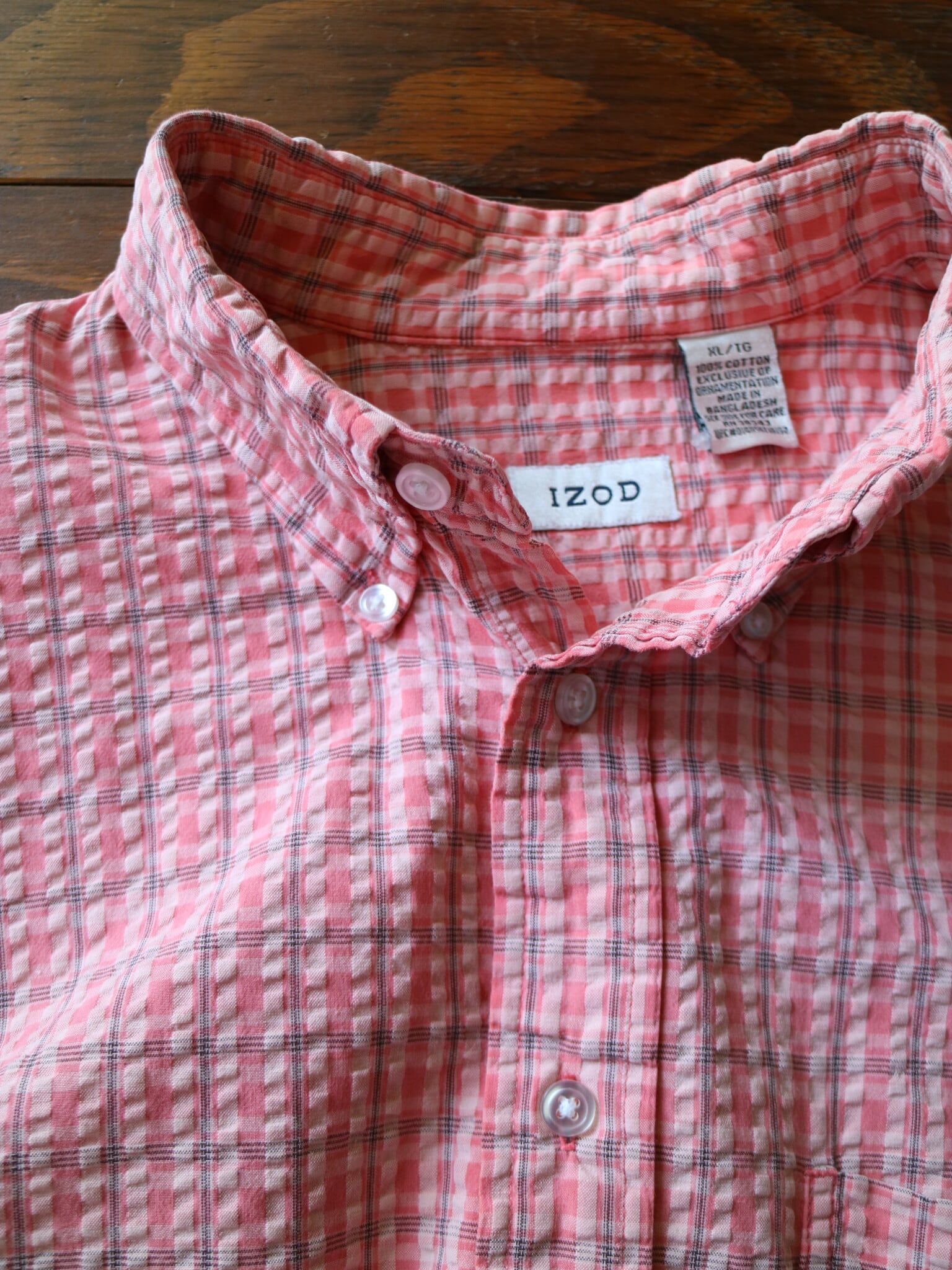 IZOD チェック柄 シアサッカー 半袖 ボタンダウンシャツ