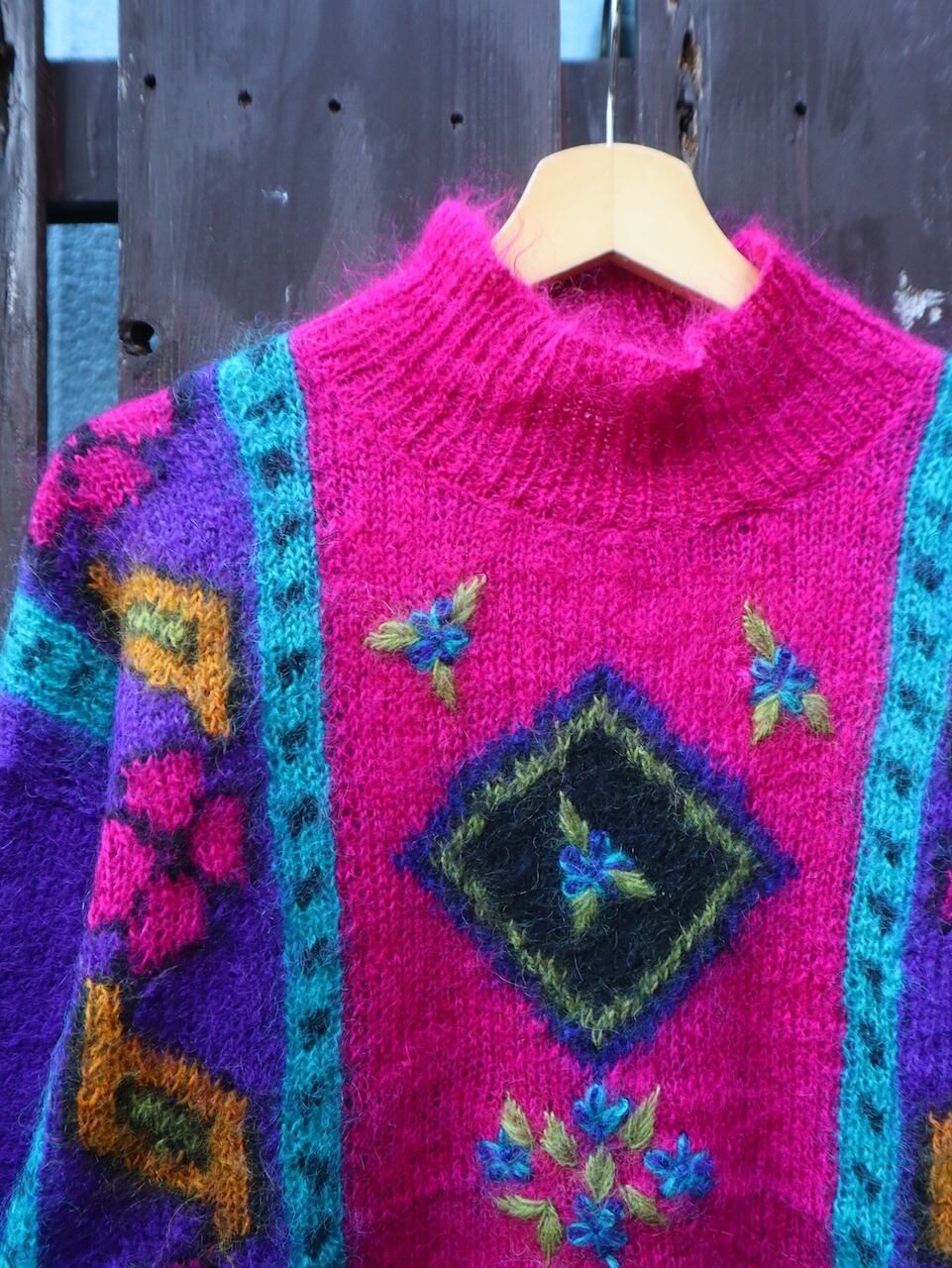 STUDIO flower pattern acryl mohair high neck knit sweater
